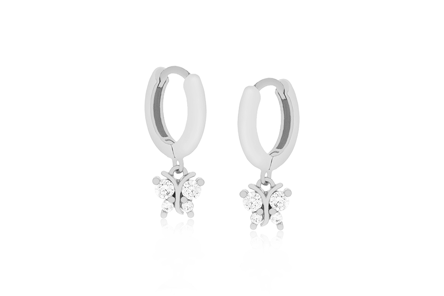 BRINCO BANHADO EM RÓDIO BRANCO, RETANGULAR 13x11mm, COM 8 ZIRCÔNIAS E PONTOS