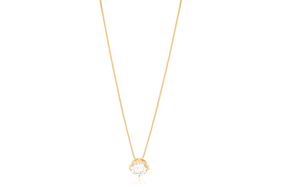 GARGANTILHA BANHADA EM OURO, VENEZIANA 0,80mm, 42cm COMPRIMENTO E PINGENTE OVAL 7X5mm COM 11 ZIRCÔNIAS BRANCAS OU COLORIDAS