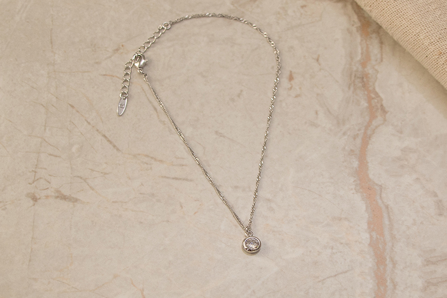 TORNOZELEIRA BANHADA EM RÓDIO BRANCO, ELO SINGAPURA E PONTO DE LUZ 5mm