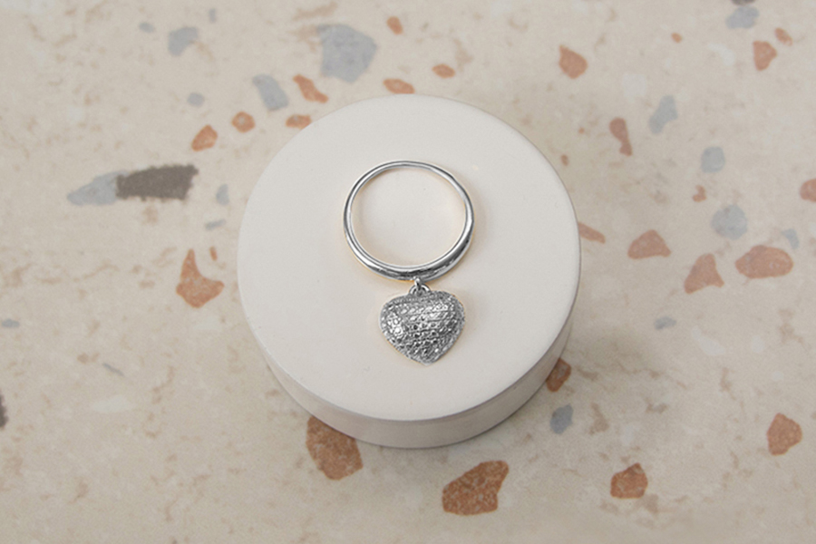 ANEL EM PRATA, CORAÇÃO VAZADO, 7mm ALTURA, COM BANHO DE RÓDIO BRANCO, COLEÇÃO AURA