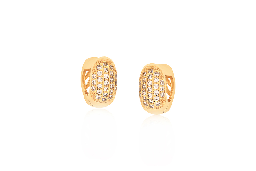 BRINCO BANHADO EM OURO, ARGOLINHA 17mm DIÂMETRO, 11mm LARGURA COM 102 ZIRCÔNIAS