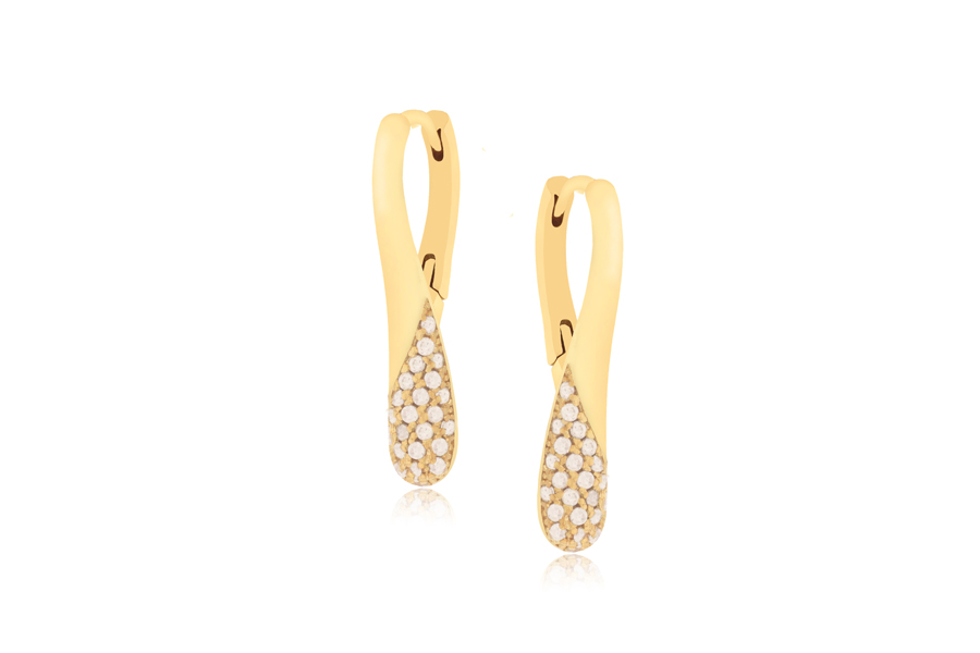 BRINCO BANHADO EM OURO, ARGOLINHA 17mm DIÂMETRO, 11mm LARGURA COM 102 ZIRCÔNIAS