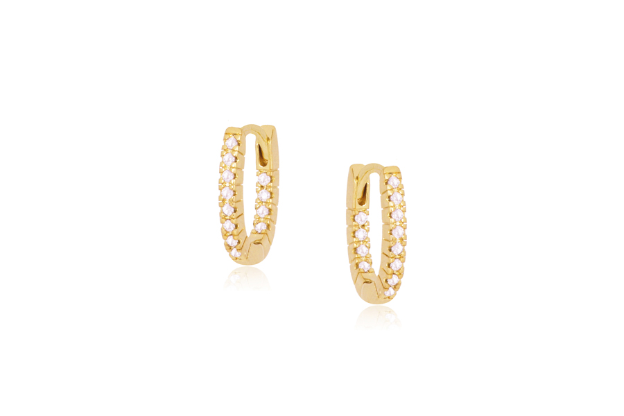 BRINCO BANHADO EM OURO, ARGOLINHA 17mm DIÂMETRO, 11mm LARGURA COM 102 ZIRCÔNIAS