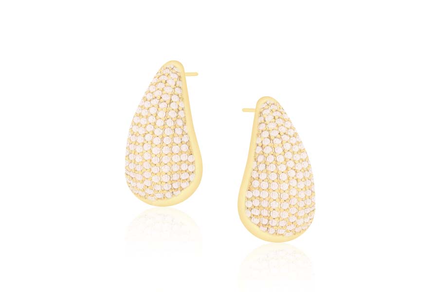 BRINCO BANHADO EM RÓDIO BRANCO, 25mm ALTURA, COM ZIRCÔNIAS NAVETE E GOTA 7mm LARGURA