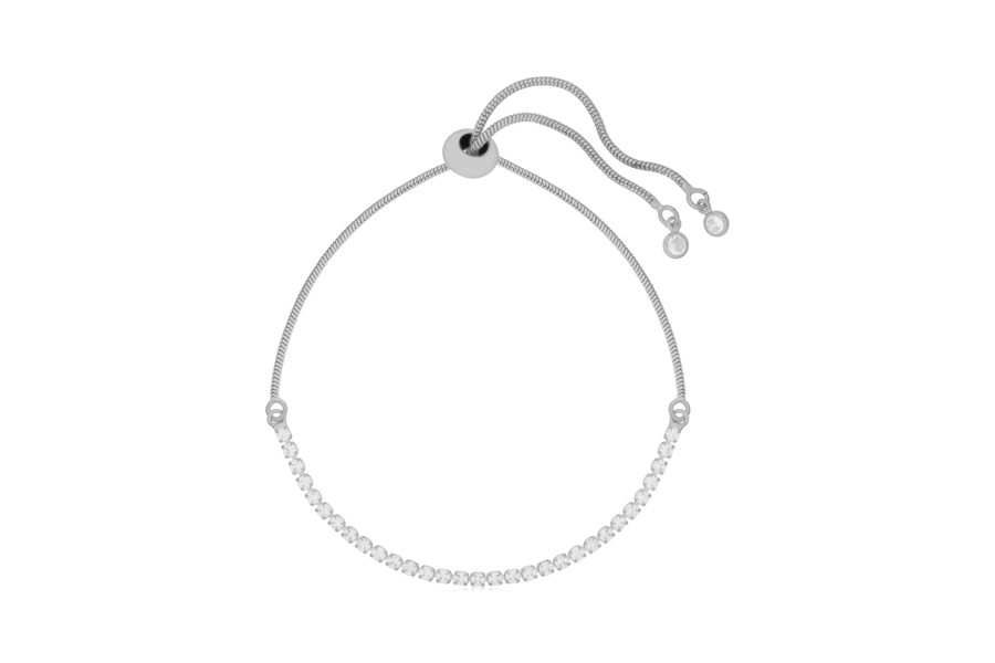 BRACELETE BANHADO EM RÓDIO BRANCO, DUAS FILEIRAS DE ZIRCÔNIAS NA FRENTE E ATRÁS