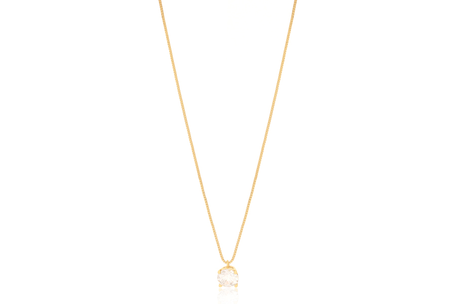 GARGANTILHA BANHADA EM OURO, VENEZIANA 0,80mm, 42cm COMPRIMENTO E PINGENTE OVAL 7X5mm COM 11 ZIRCÔNIAS BRANCAS OU COLORIDAS