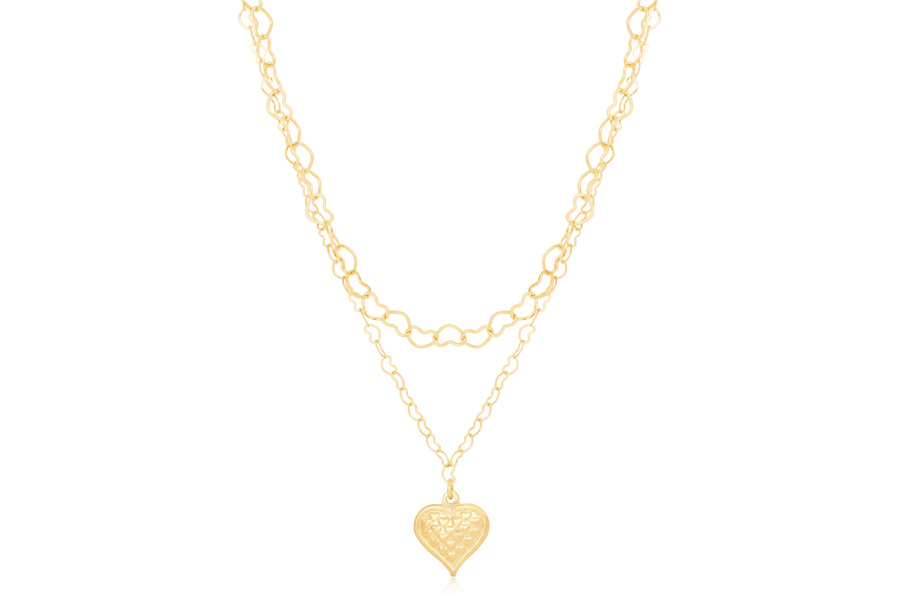 GARGANTILHA BANHADA EM OURO, VENEZIANA 0,80mm, 45cm COMPRIMENTO E CORAÇÃO 12,50mm LARGURA