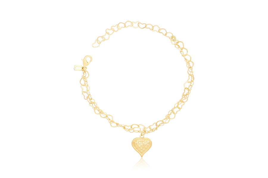 PULSEIRA BANHADA EM RÓDIO BRANCO, ELO PORTUGUÊS 3mm, 16cm COMPRIMENTO, EXTENSOR 5cm COMPRIMENTO E CORAÇÃO 16mm LARGURA