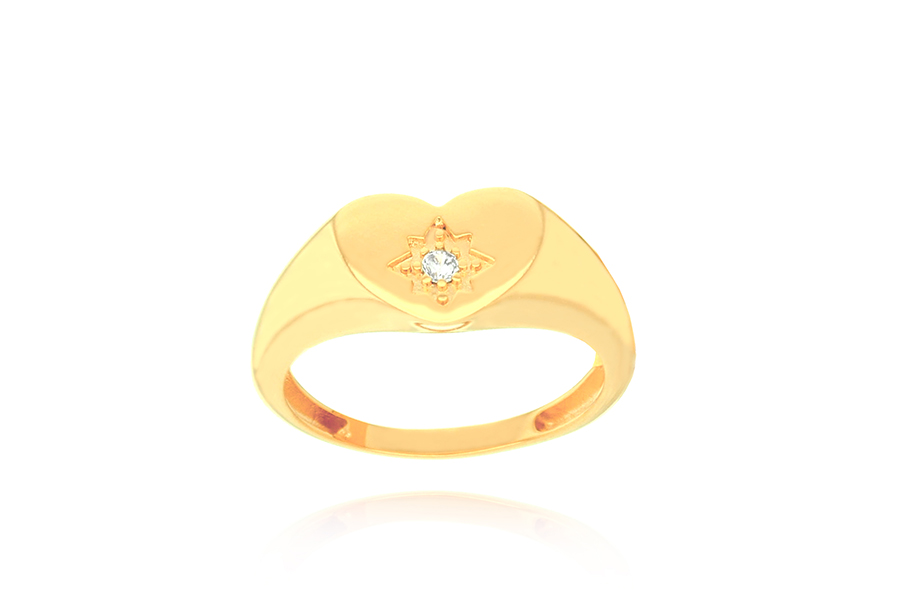 ANEL EM PRATA, MEIO ARO TRABALHADO, 1 ZIRCÔNIA CORAÇÃO 4mm ALTURA