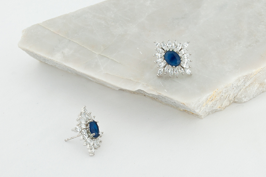 BRINCO EM PRATA, PONTO DE LUZ FLOR 7mm DIÂMETRO