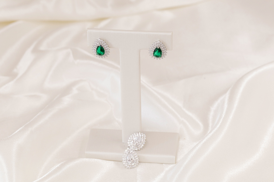 BRINCO BANHADO EM RÓDIO BRANCO, 25mm ALTURA, COM ZIRCÔNIAS NAVETE E GOTA 7mm LARGURA