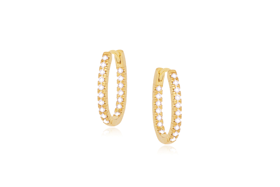 BRINCO EM PRATA, ARGOLINHA COM 2 FILEIRAS DE ZIRCÔNIAS, MEIO CRAVEJADA, 2,80mm LARGURA E 14mm DIÂMETRO