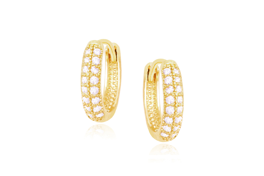 BRINCO BANHADO EM OURO, ARGOLINHA 17mm DIÂMETRO, 11mm LARGURA COM 102 ZIRCÔNIAS