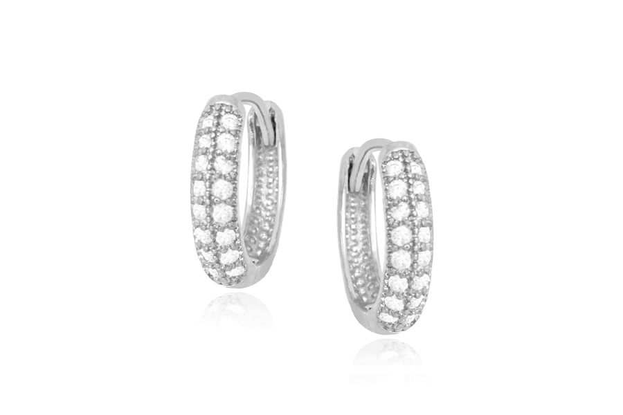 BRINCO BANHADO EM RÓDIO BRANCO, ARGOLINHA 14mm DIÂMETRO, COM 24 ZIRCÔNIAS, DUAS FILEIRAS