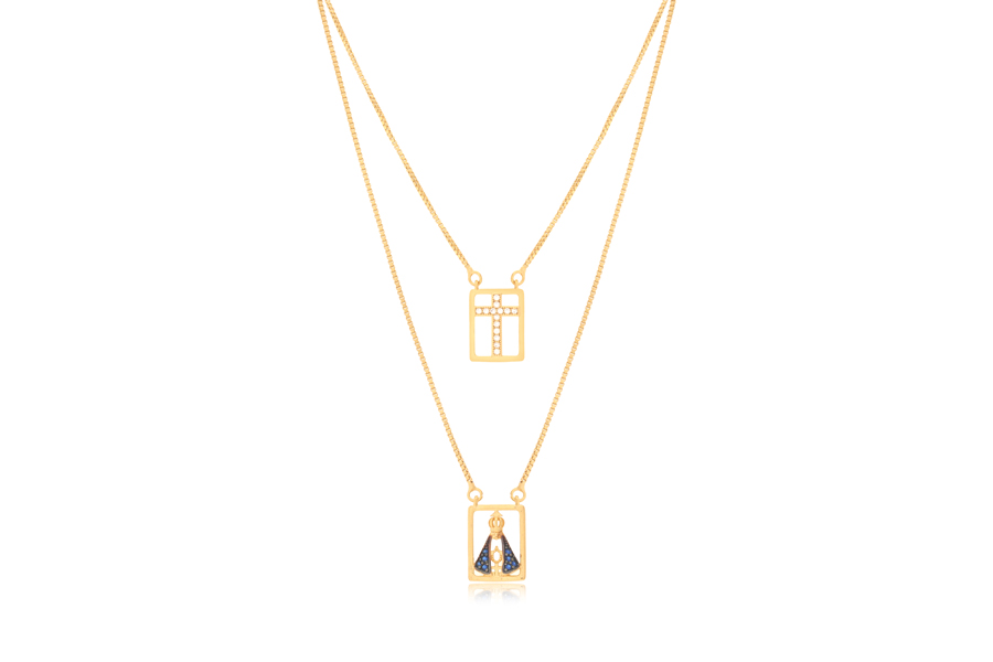 ESCAPULÁRIO EM AÇO, NOSSA SENHORA DO CARMO, 60cm COMPRIMENTO, LINHA TRADICIONAL