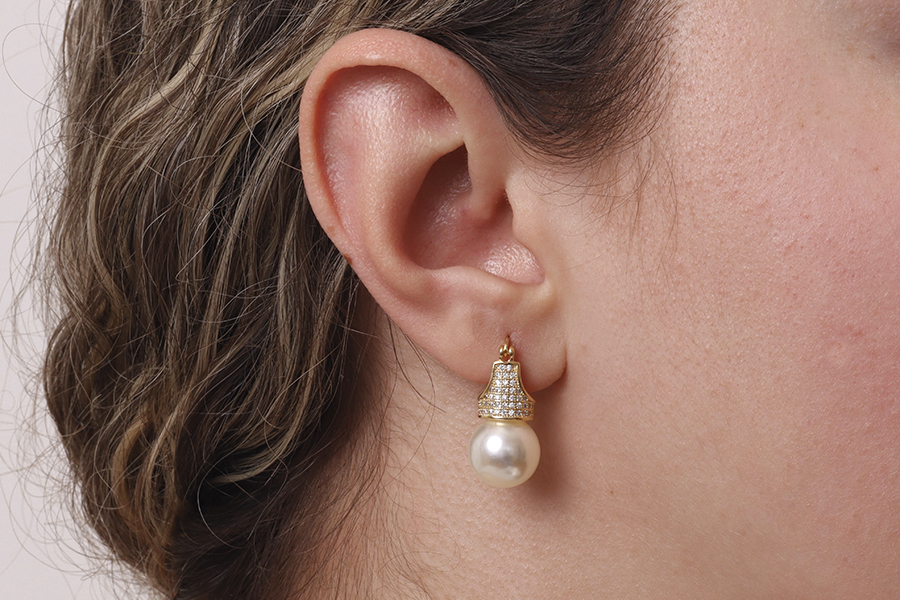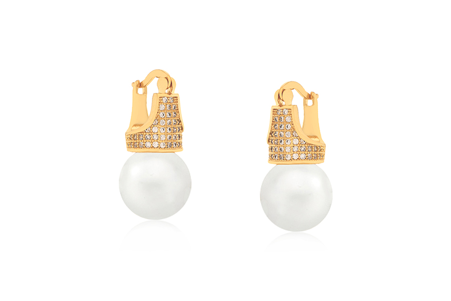 BRINCO BANHADO EM OURO, PÉROLA SHELL 10mm, LINHA TRADICIONAL