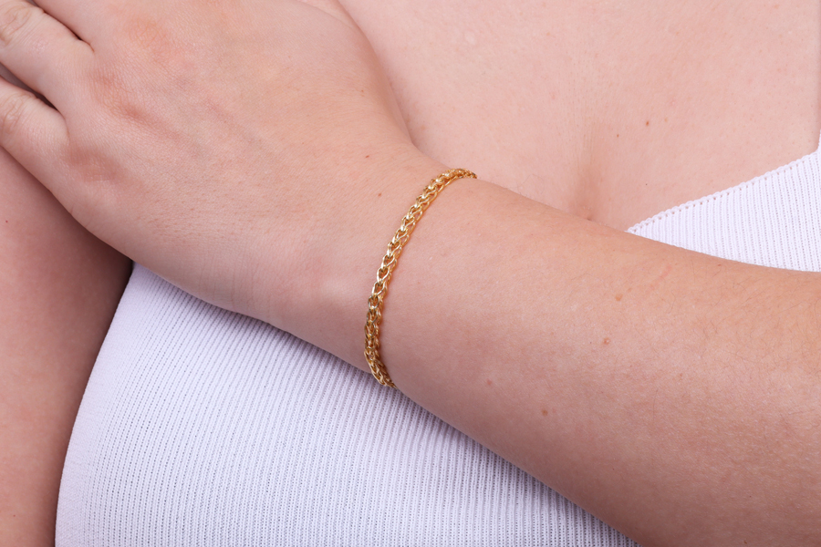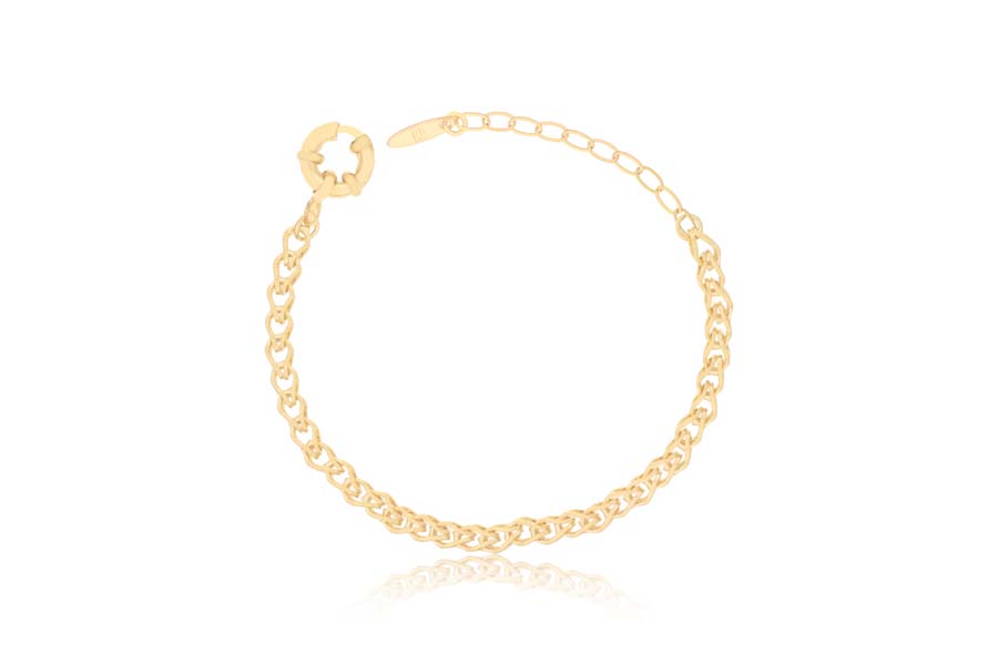 PULSEIRA BANHADA EM OURO, CORRENTE ELO DUPLO 3,70mm LARGURA, 15cm COMPRIMENTO, EXTENSOR 5cm E PESO 4,60g