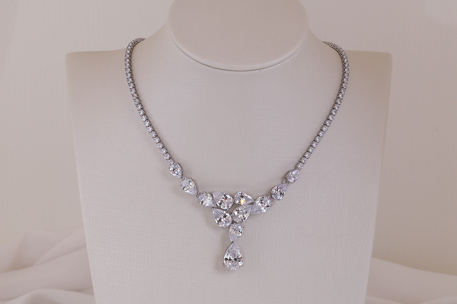 GARGANTILHA EM PRATA, RIVIERA COM ZIRCÔNIAS REDONDAS 2mm DIÂMETRO, 44+5cm COMPRIMENTO