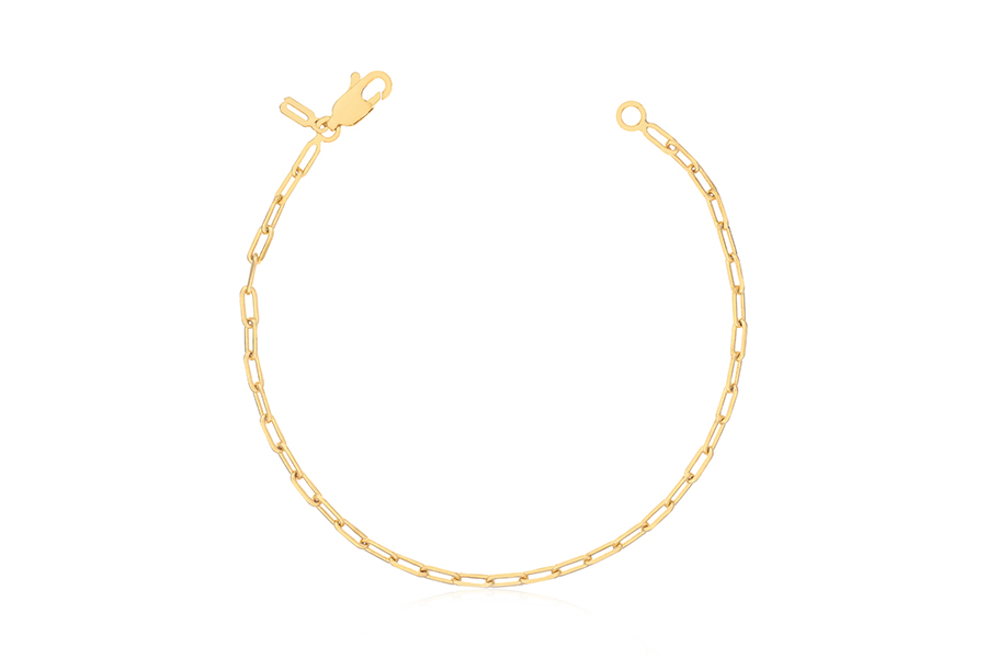 PULSEIRA BANHADA EM OURO, CORRENTE ELO CORDA 3mm ESPESSURA, 17cm COMPRIMENTO, EXTENSOR 5cm COMPRIMENTO E PESO 5,30g