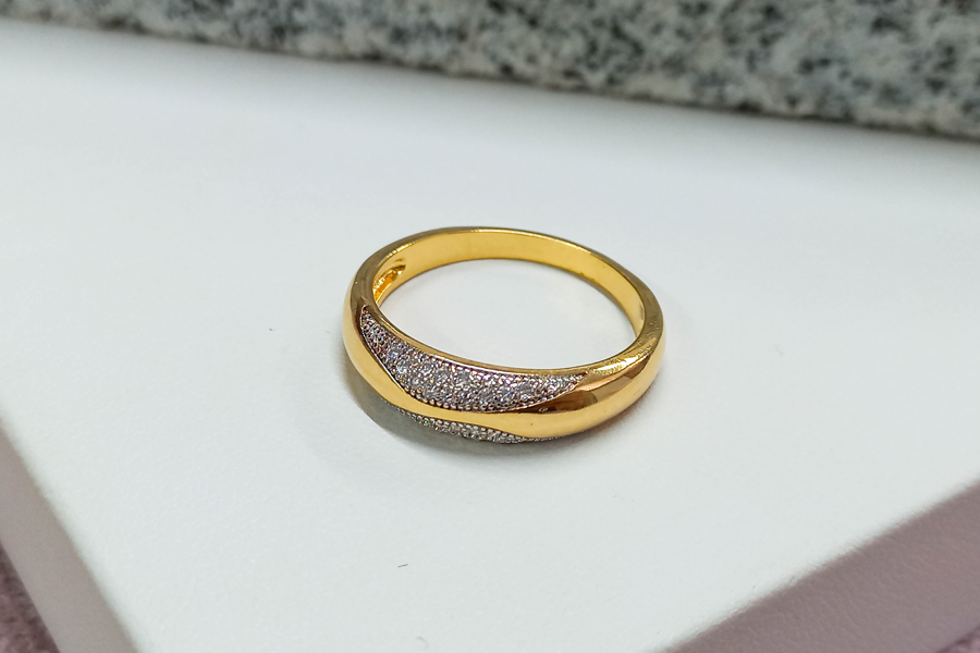ANEL BANHADO EM OURO, COM 112 ZIRCÔNIAS