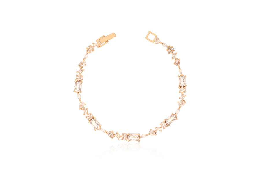 BRACELETE BANHADO EM RÓDIO BRANCO, DUAS FILEIRAS DE ZIRCÔNIAS NA FRENTE E ATRÁS