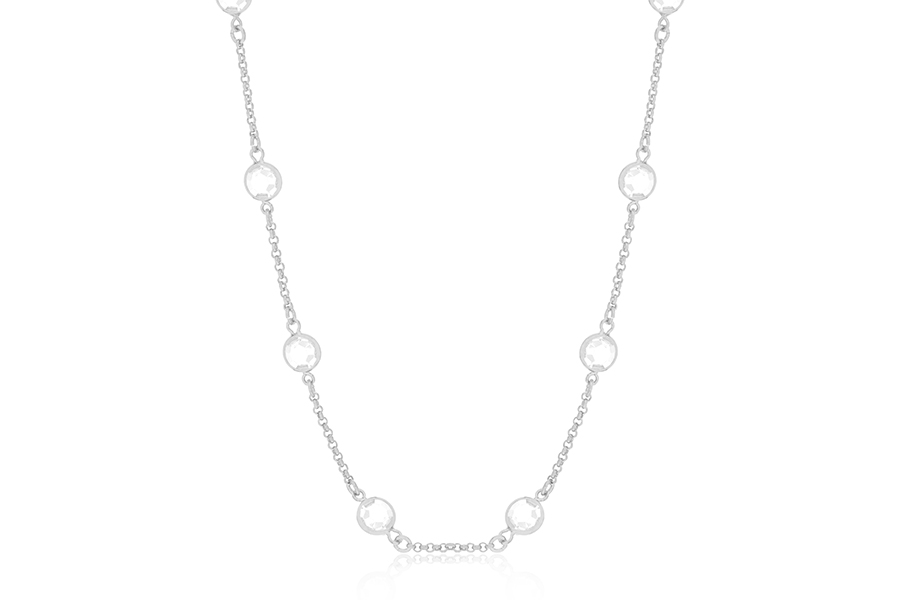 GARGANTILHA EM PRATA, PONTO DE LUZ 4mm DIÂMETRO, ELO VENEZIANA, 42+5cm COMPRIMENTO