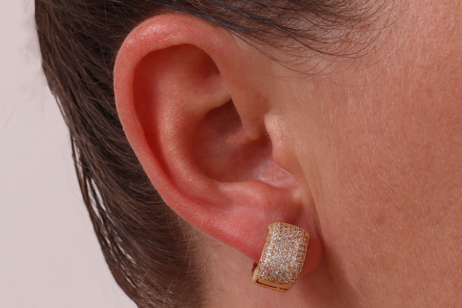 BRINCO EM PRATA, TORCIDO CRAVEJADO, 10mm ALTURA