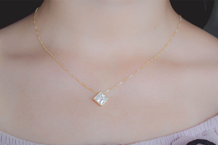 GARGANTILHA BANHADA EM OURO, ELO VENEZIANA 0,80mm, 42cm COMPRIMENTO E ZIRCONIA GOTA 10X7mm, PARA QUALQUER COR DE PEDRA