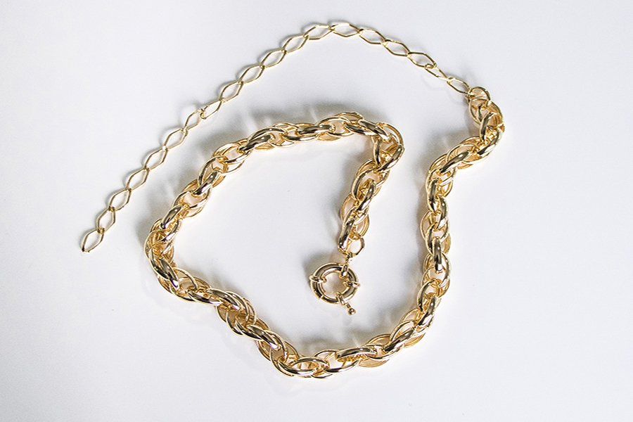 CHOKER BANHADA EM OURO, CORRENTE ELO OVAL OCO 14x9mm, 36cm COMPRIMENTO