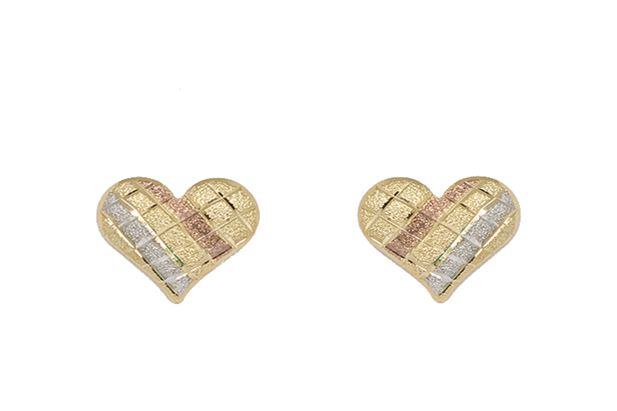 BRINCO BANHADO EM OURO, CORAÇÃO 9mm LARGURA COM ZIRCÔNIAS BRANCAS OU COLORIDAS