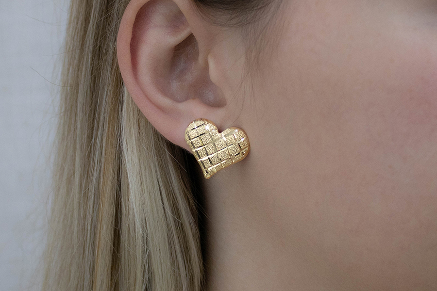 BRINCO EM PRATA, CORAÇÃO CRAVEJADO COM BORDAS LISAS