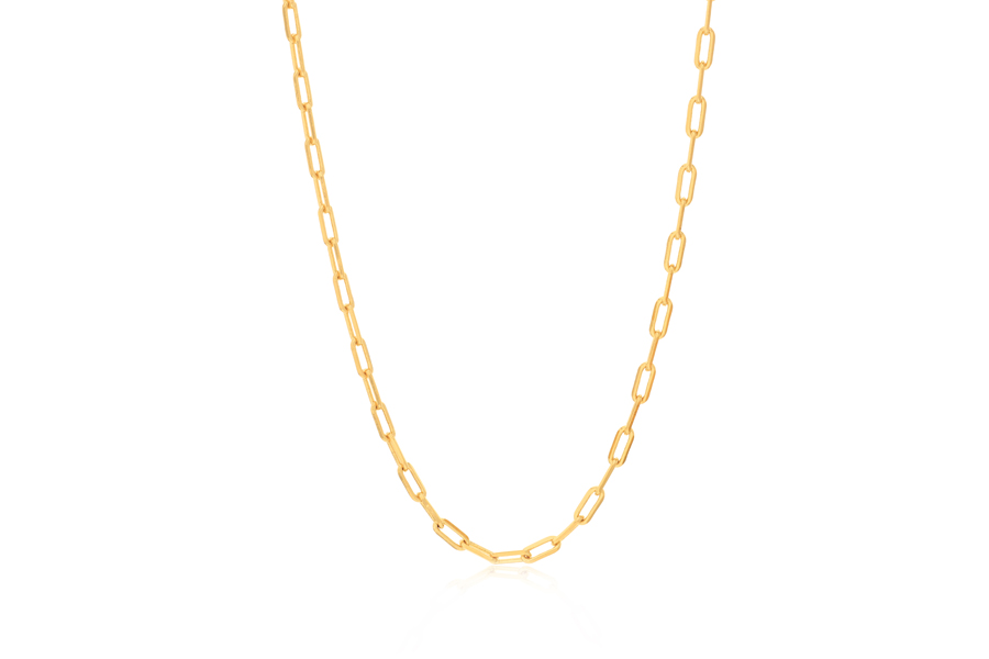 CORRENTE BANHADA EM OURO, ELO PORTUGUÊS 3mm, 40cm COMPRIMENTO, EXTENSOR 5cm COMPRIMENTO E PESO 7,10g