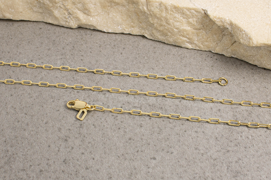 CORRENTE BANHADA EM OURO, ELO RABO DE RATO 1mm, 40cm COMPRIMENTO, EXTENSOR 5cm COMPRIMENTO E PESO 3g