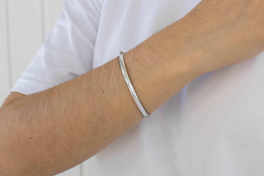 PULSEIRA BANHADA EM RÓDIO BRANCO, ELO PORTUGUÊS 3mm, 16cm COMPRIMENTO, EXTENSOR 5cm COMPRIMENTO E CORAÇÃO 16mm LARGURA