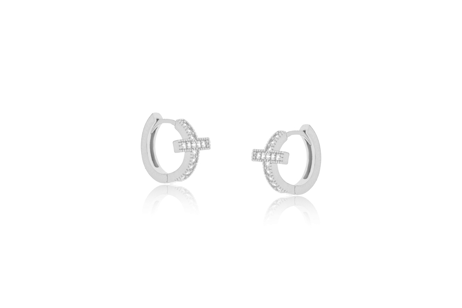 BRINCO BANHADO EM RÓDIO BRANCO, ARGOLINHA 14mm DIÂMETRO, COM 24 ZIRCÔNIAS, DUAS FILEIRAS