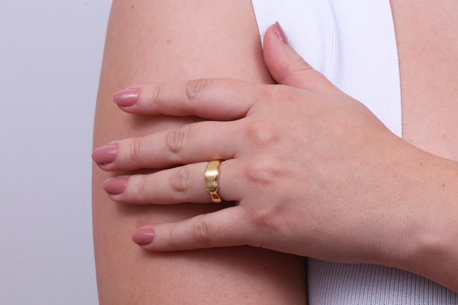 ANEL BANHADO EM OURO CORAÇÃO 15mm ALTURA