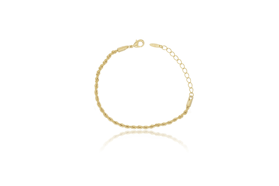 PULSEIRA BANHADA EM OURO, CORRENTE ELO CORDA 4mm, 17cm COMPRIMENTO, EXTENSOR 5cm COMPRIMENTO E PESO 9,10g