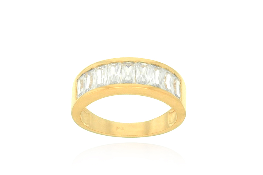 ANEL BANHADO EM OURO, COM ZIRCÔNIAS BAGUETES COLORIDAS