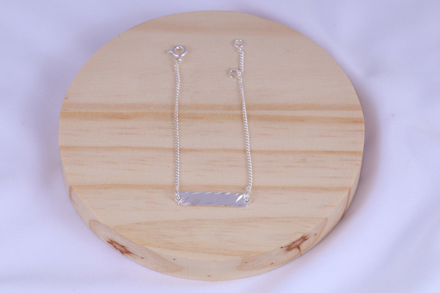 PULSEIRA EM PRATA, INFANTIL, MELINDROSA, CHAPA LISA 5mm ALTURA, ELO GRUMET, 14cm COMPRIMENTO