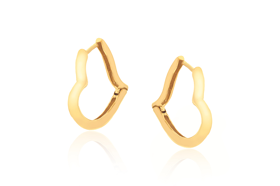 BRINCO BANHADO EM OURO, CORAÇÃO 26mm LARGURA
