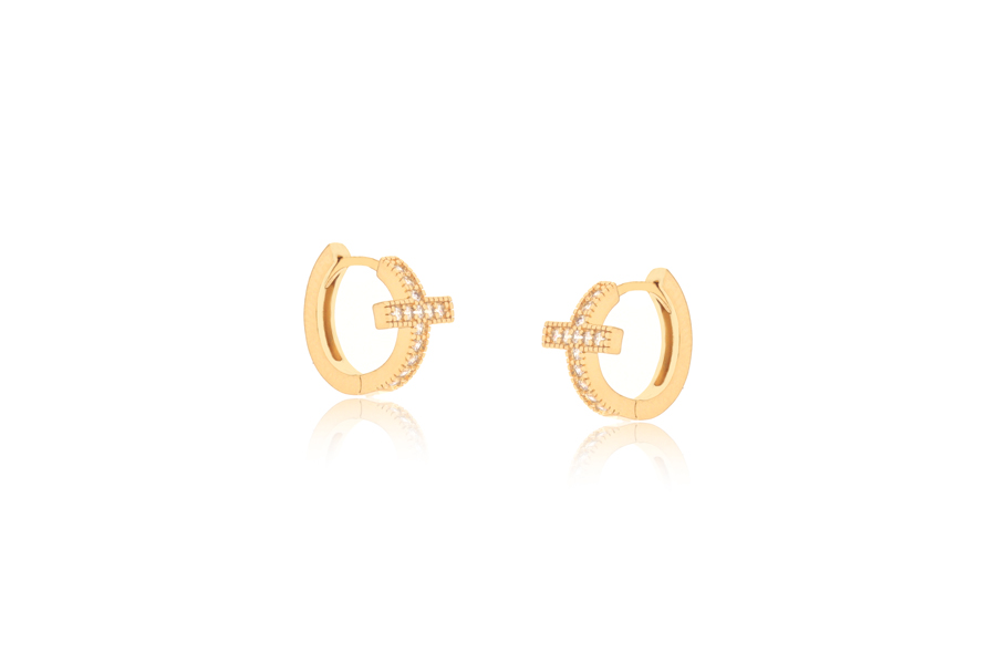 BRINCO BANHADO EM OURO, ARGOLINHA 17mm DIÂMETRO, 11mm LARGURA COM 102 ZIRCÔNIAS