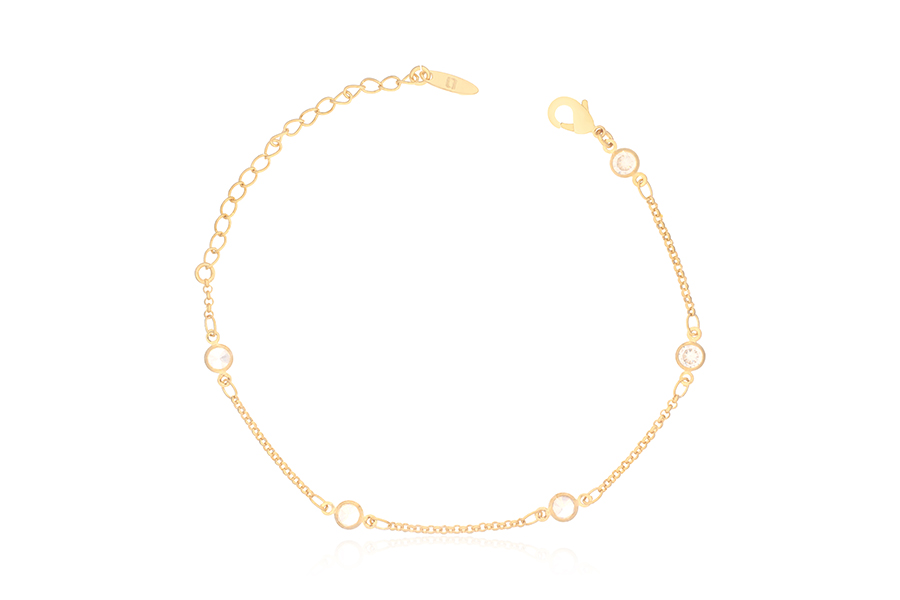 PULSEIRA BANHADA EM OURO, CORRENTE ELO CORDA 3mm ESPESSURA, 17cm COMPRIMENTO, EXTENSOR 5cm COMPRIMENTO E PESO 5,30g