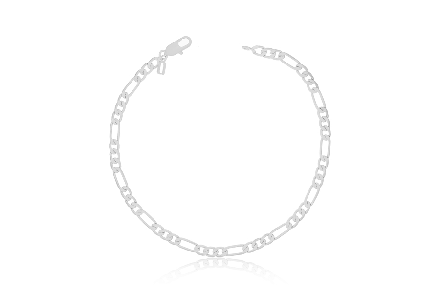 PULSEIRA BANHADA EM RÓDIO BRANCO, ELO PORTUGUÊS 3mm, 16cm COMPRIMENTO, EXTENSOR 5cm COMPRIMENTO E CORAÇÃO 16mm LARGURA
