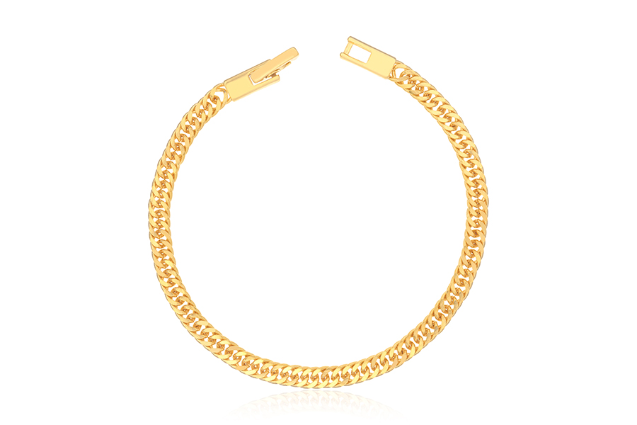 PULSEIRA BANHADA EM OURO, CORRENTE ELO CORDA 3mm ESPESSURA, 17cm COMPRIMENTO, EXTENSOR 5cm COMPRIMENTO E PESO 5,30g