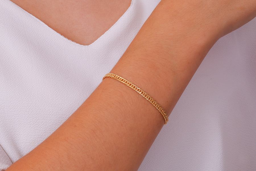 PULSEIRA BANHADA EM OURO, ELO DUPLO 1,60mm ESPESSURA, 16cm COMPRIMENTO E ÁRVORE DA VIDA 16mm DIÂMETRO