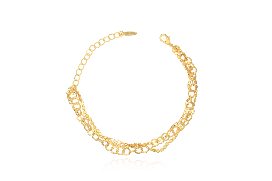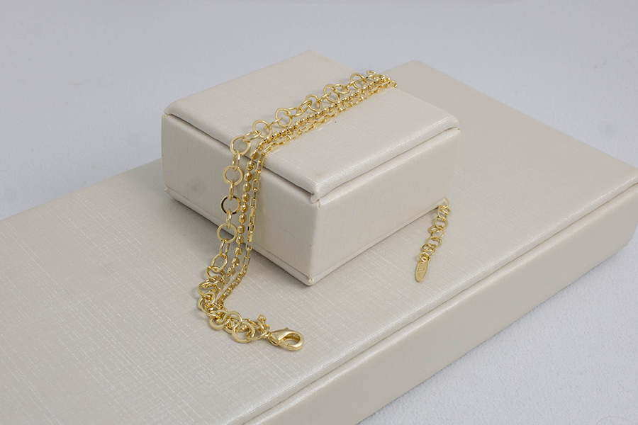 PULSEIRA BANHADA EM OURO, CORRENTE ELO CORDA 3mm ESPESSURA, 17cm COMPRIMENTO, EXTENSOR 5cm COMPRIMENTO E PESO 5,30g