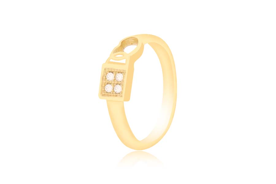 ANEL BANHADO EM OURO, ZIRCÔNIA RETANGULAR 5X3mm E ZIRCÔNIAS