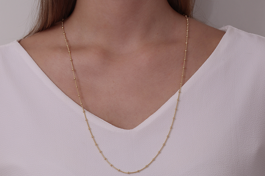 GARGANTILHA BANHADA EM OURO, PONTO DE LUZ 8mm, VENEZIANA 0,80mm, 40cm COMPRIMENTO, LINHA TRADICIONAL