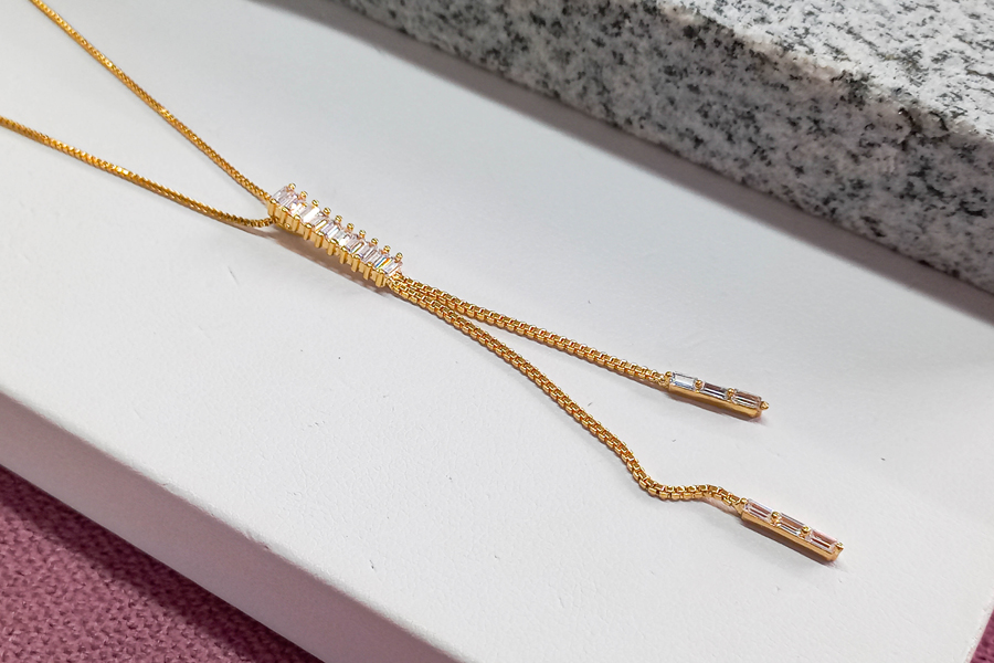 GARGANTILHA BANHADA EM OURO, ELO 5,50mm LARGURA, 44cm COMPRIMENTO E ZIRCÔNIA RETANGULAR
